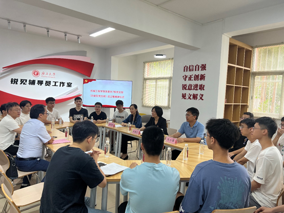 2023年6月14日,机械工程学院党委东7栋党支部在东校园学生宿舍7栋一楼“锐见辅导员工作室”成立并举办支部授牌仪式。机械工程学院党委、校党委组织部、学工部相关负责同志,广西大学锐见辅导员工作室成员、东7栋学生党员代表20多人出席活动并共同见证。