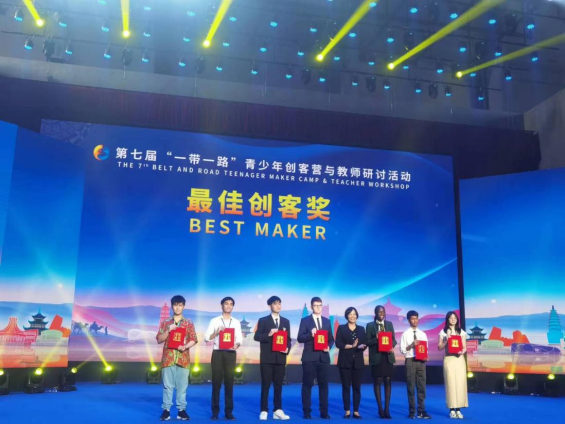11月10日,学院党委书记卢婵江出席第七届“一带一路”青少年创客营与教师研讨活动闭幕式,现场为获奖的创客们颁奖。
