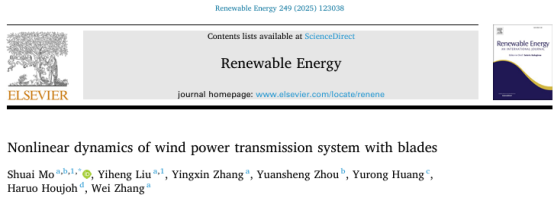 近日,我院2022级硕士研究生刘翊恒(导师:莫帅教授)以共同第一作者在工程技术领域国际权威学术期刊《Renewable Energy》(中科院一区,Top期刊,IF:9.0)发表研究成果“Nonlinear dynamics of wind power transmission system with blades”。该成果以广西大学机械工程学院为第一单位。