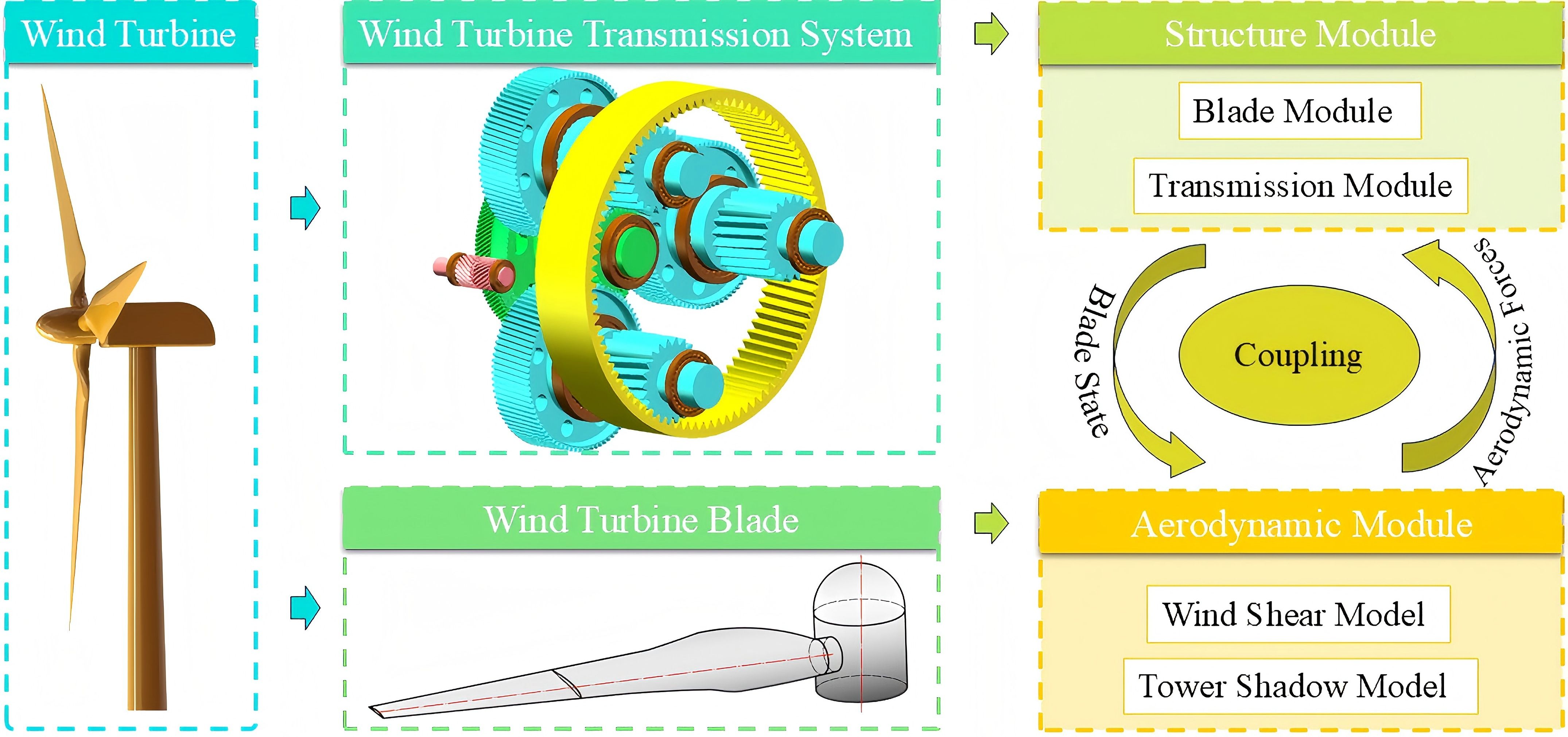 随着风能经济的大力发展,以及风电机组大型化与复杂化,风电传动系统在气动、机械耦合作用下的非线性振动、载荷突变及动态失稳问题日益突出,直接影响机组可靠性及寿命。因此,建立风电传动系统动力学模型,研究叶片柔性变形与风电齿轮-轴承传动系统振动的耦合机理,对指导变桨控制策略优化,降低传动链疲劳损伤,提升风电机组对复杂环境载荷的适应性具有重要意义。