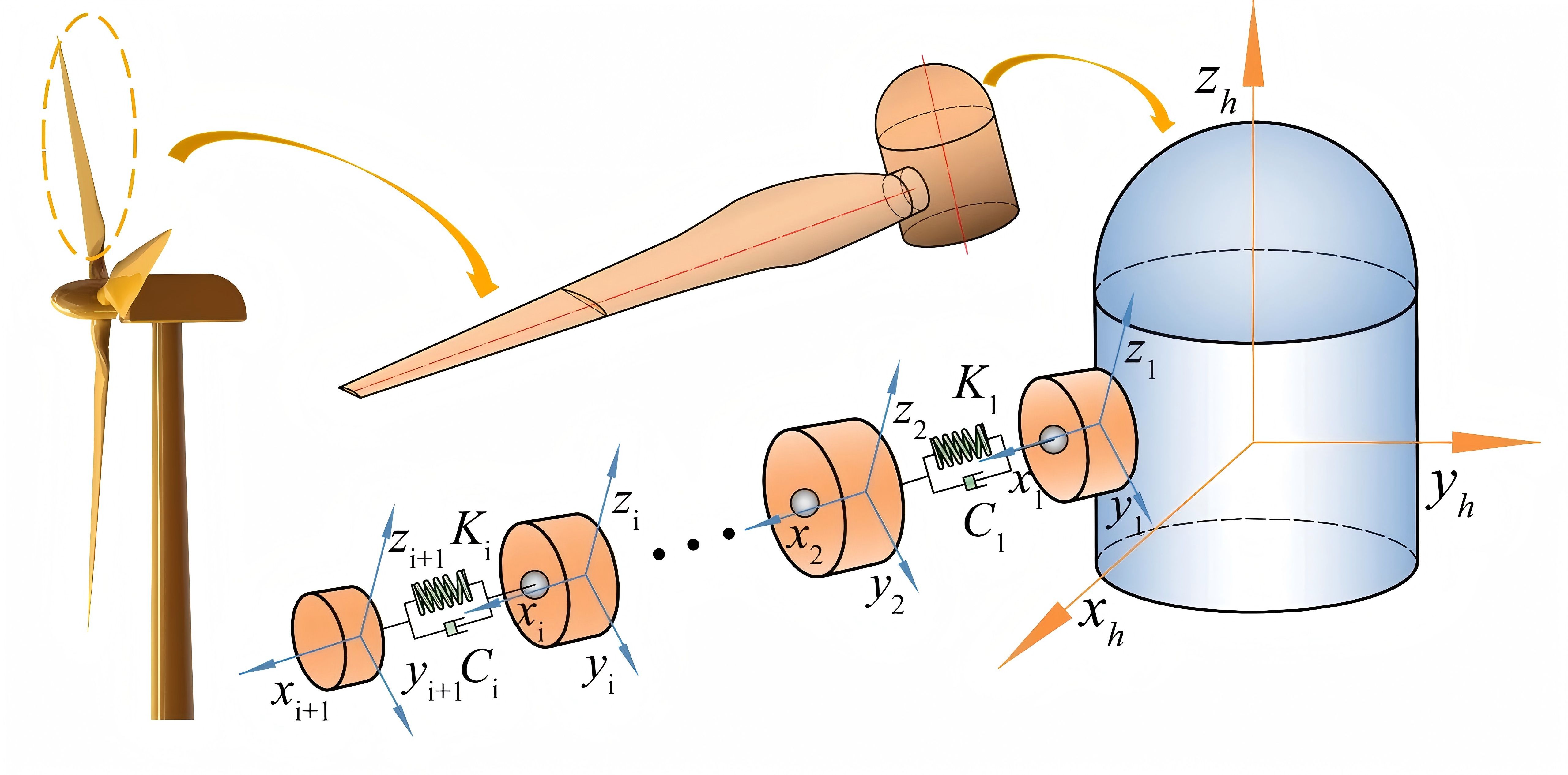 该成果创新性建立了考虑风切变、塔影效应、时变啮合刚度等多因素耦合的风电叶片-齿轮-轴承传动系统非线性动力学模型,通过该动力学模型,并利用数值积分法求解系统振动微分方程组,可以实现风电叶片-齿轮-轴承传动系统振动特性的精确性表征。该研究成果不仅为风电机组的优化设计、振动控制与故障诊断奠定了理论依据,同时还为新能源装备动力学研究提供新范式。