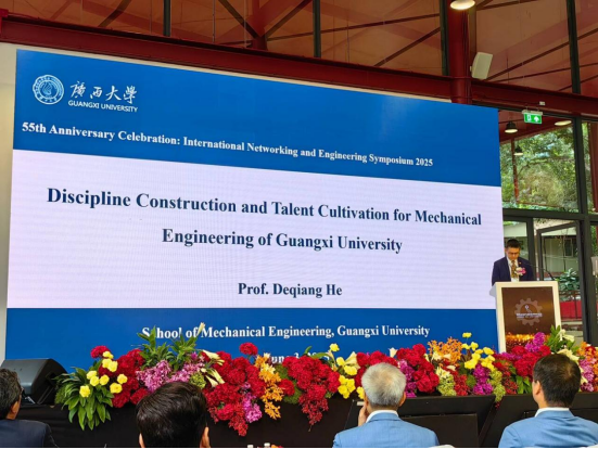 贺德强院长作为首位嘉宾在开幕式上作主旨报告。贺院长向与会的国际专家学者全面介绍广西大学办学历史和学科发展,并着重分享机械工程学院在学科交叉融合、精准服务区域与国家重大需求导向下,在学科建设和人才培养方面所取得的建设成效,赢得与会专家的高度关注。