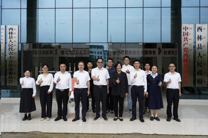 为贯彻学校党委关于选调生工作的决策部署,落实“扶上马,送一程,关怀一辈子”的指示精神,深化乡村振兴与民族团结工作,9月30日,学院党委联合校学工部、校友办赴百色市西林县开展选调生走访调研工作。学院党委书记卢婵江、副书记黄路明、副院长陈宏波、校友办副主任黄庶冰、学工部代表王天亮以及我院辅导员等一行7人一同前往走访慰问。西林县委常委、组织部部长、党校校长谌宏明,县委组织部副部长、公务员局局长李富银,以及在西林县服务的广西大学选调生代表等9人参加座谈交流。