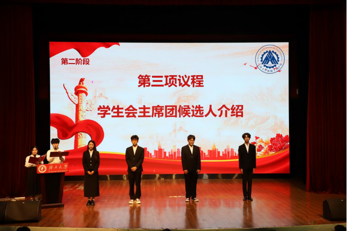 在选举环节,主持人分别介绍了新一届学生会、研究生会主席团候选人。工作人员为代表分发选票,投票计票有序进行。计票结束后,主持人向全体代表宣读大会选举结果,宣告新一届主席团成员正式产生。