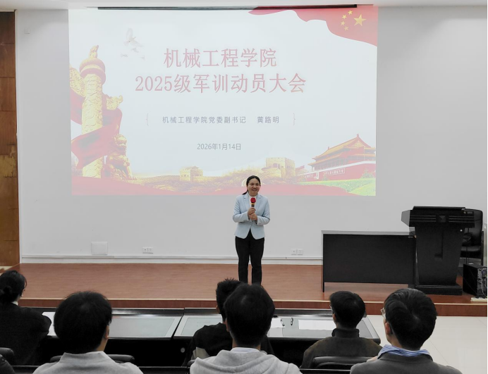 为扎实做好2025级本科生军训筹备与组织工作,确保军训任务顺利开展,2026年1月14日,学院在机二阶召开2025级军训动员大会,学院党委副书记黄路明,辅导员粟泓屿,学院兼职辅导员及2025级本科生各班班长、团支书、纪检委员、生活委员和各宿舍舍长参会。