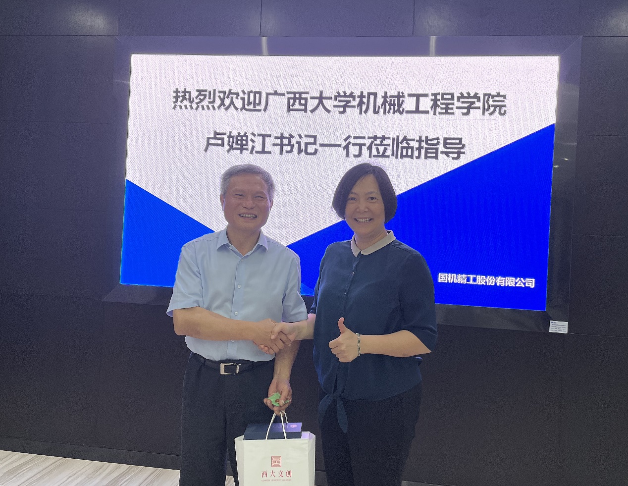 在国机精工股份有限公司,卢婵江一行与来自国机精工、郑州机械研究所、郑州日产等的校友进行了座谈。卢婵江书记向校友们介绍了近年来学校、学院的发展情况,她提到学院正处于爬坡过坎的关键发展期,要抓住发展机遇就需要广大校友的大力支持,希望学院和校友加强联系交流,相互促进发展。学院也将进一步加强校友工作,尽心尽力为校友服务。她还为各位校友送上学院精心准备的文创礼品, 校友们感动之余纷纷献上对母校最真挚的祝福,
