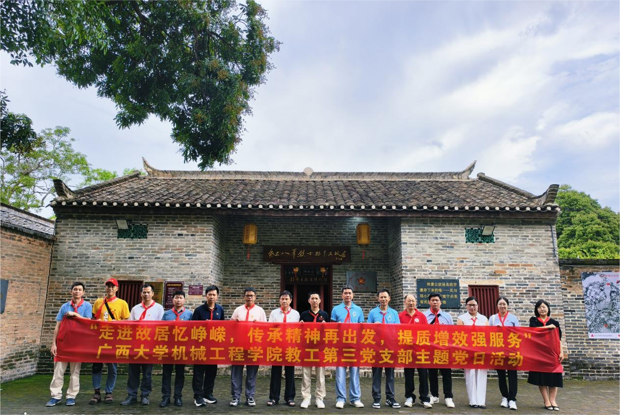 为深入贯彻中央八项规定精神学习教育,进一步增强支部党员干部的纪律意识和规矩意识,以良好作风推动学院各项工作高质量开展。2025年7月1日,机械工程学院教工第三党支部组织支部党员开展“走进故居忆峥嵘,传承精神再出发,提质增效强服务”主题党日活动。