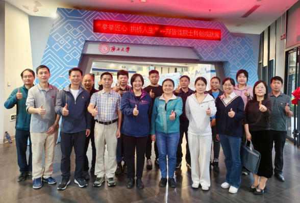 今年是中国人民抗日战争暨世界反法西斯战争胜利八十周年。2025年10月30日,院党委书记卢婵江率我院教工第三党支部开展“弘扬抗战精神,践行担当使命”主题党日活动,赴大学生活动中心参观“铸魂立心御外海”广西文化抗战特展以及“拳拳匠心,拱桥人生”郑皆连院士科创成就展。